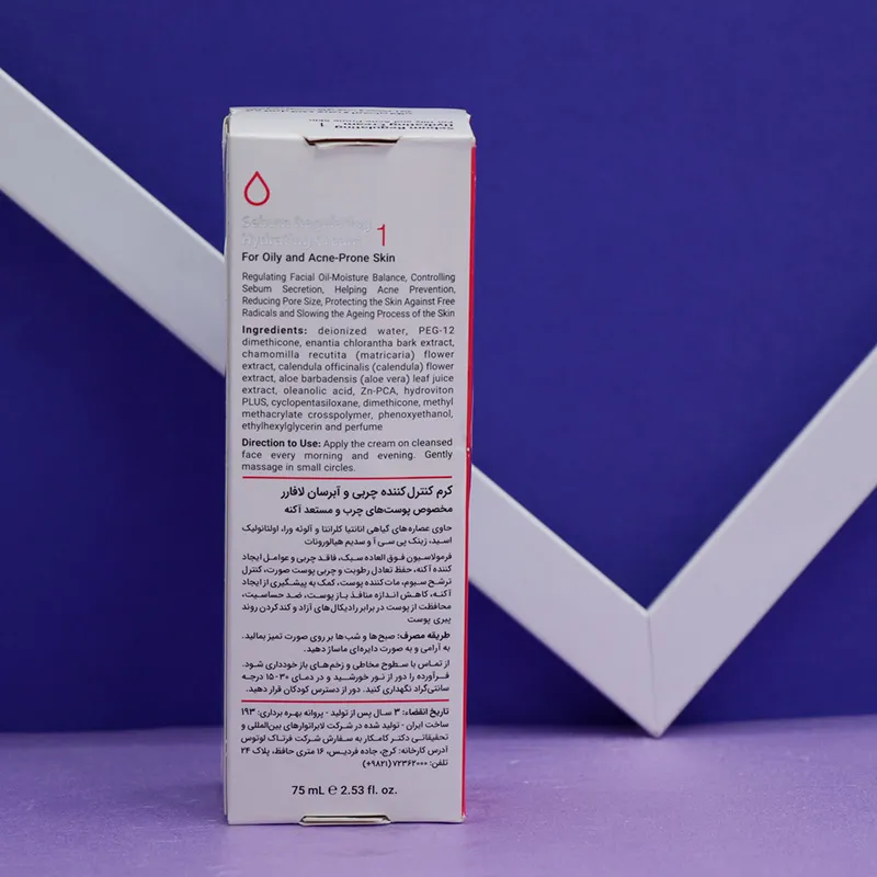 کرم کنترل کننده چربی و آبرسان مناسب پوست چرب حاوی عصاره گیاهی و عصاره آلوئه ورا جلوگیری از ایجاد جوش و کاهش دهنده منافذ باز پوست ضد حساسیت