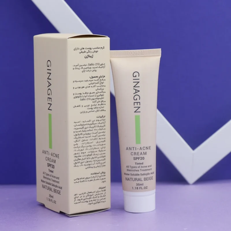 کرم مناسب پوست های دارای جوش رنگی طبیعی GINAGEN و 35 میل کد ۹۲۲۷۳