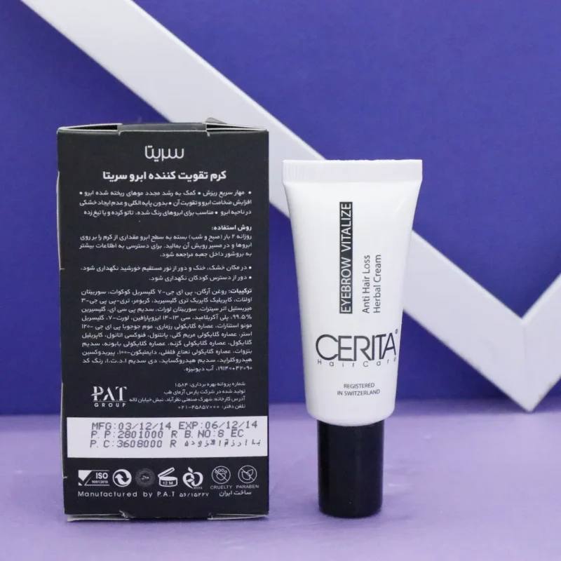 کرم تقویتکننده ابرو سریتا CERITA حجم 20 گرم، رشد سریع و افزایش ضخامت ابرو